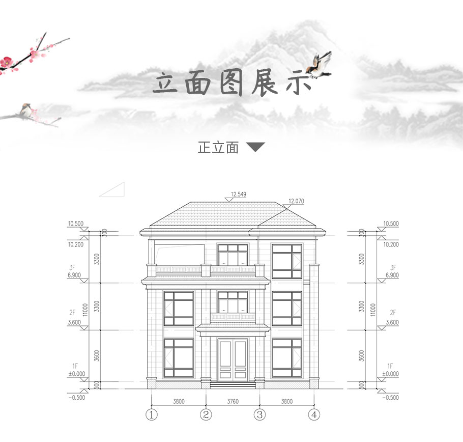 風格:新中式 | 層數:三層 | 結構形式:磚混結構 | 圖紙編號:YH-A-3243 |