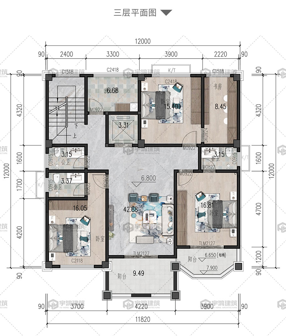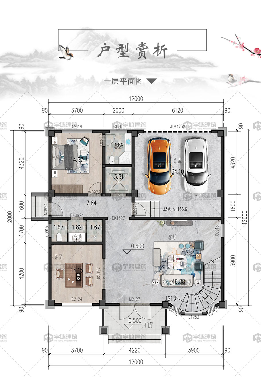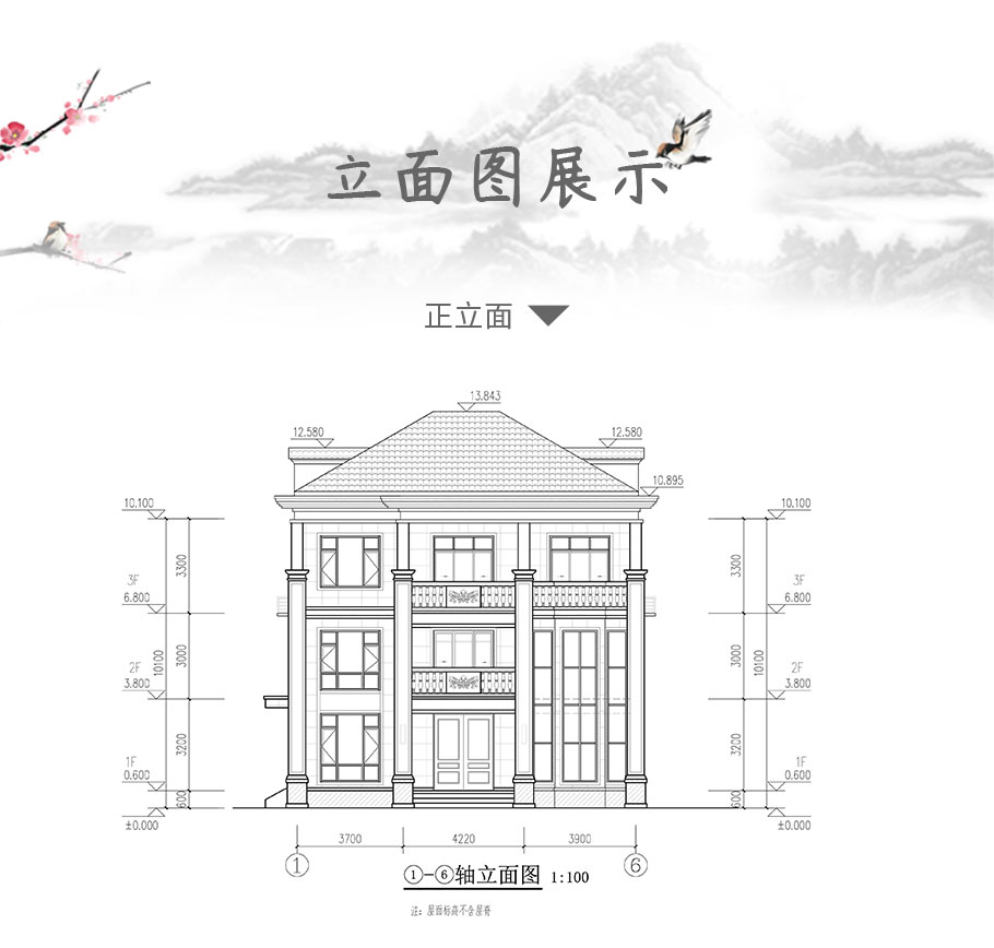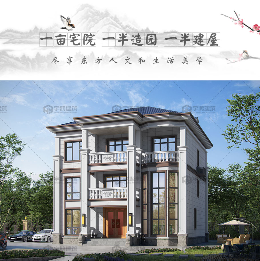 風格:新中式 | 層數:三層 | 結構形式:框架結構 | 圖紙編號:YH-A-3247 |