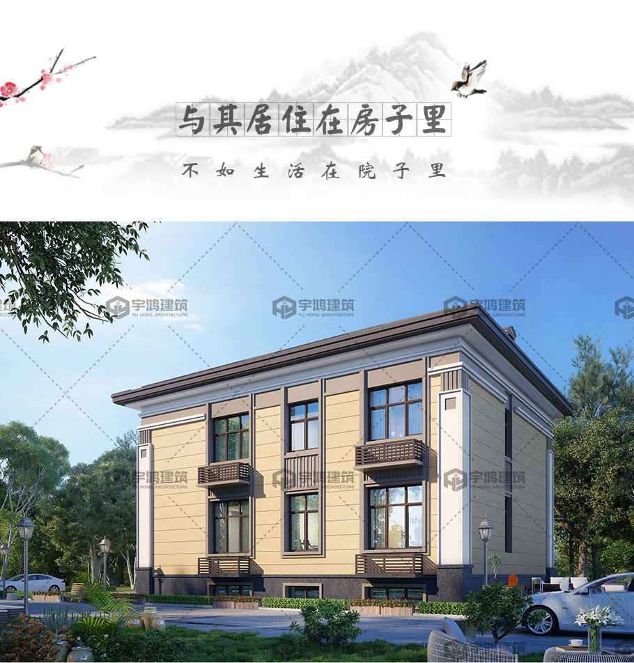 風格:新中式 | 層數(shù):二層 | 結(jié)構(gòu)形式:框架結(jié)構(gòu) | 圖紙編號:YH-A-2204 |