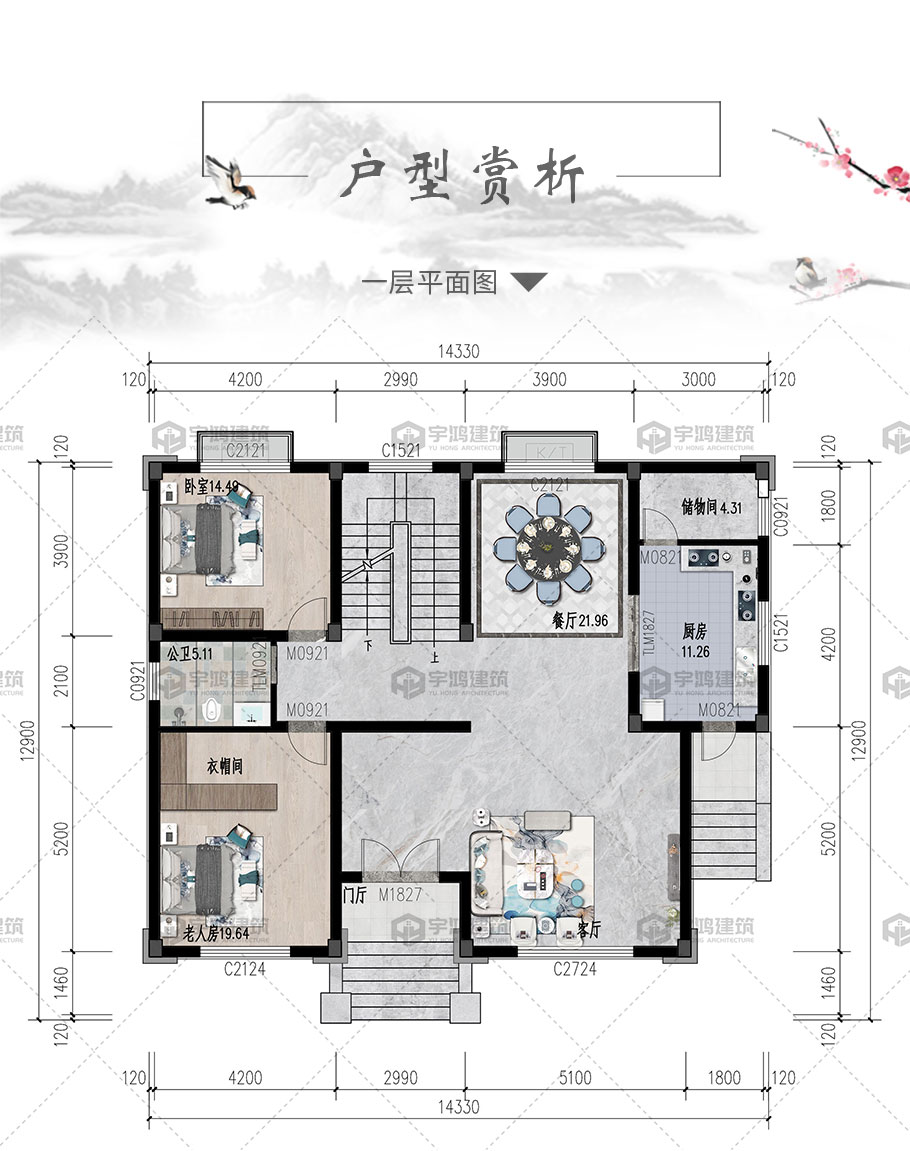 開間:14.3米 | 進深:12.9米 | 占地面積:154平方米 | 建筑面積:430.2平方米 |