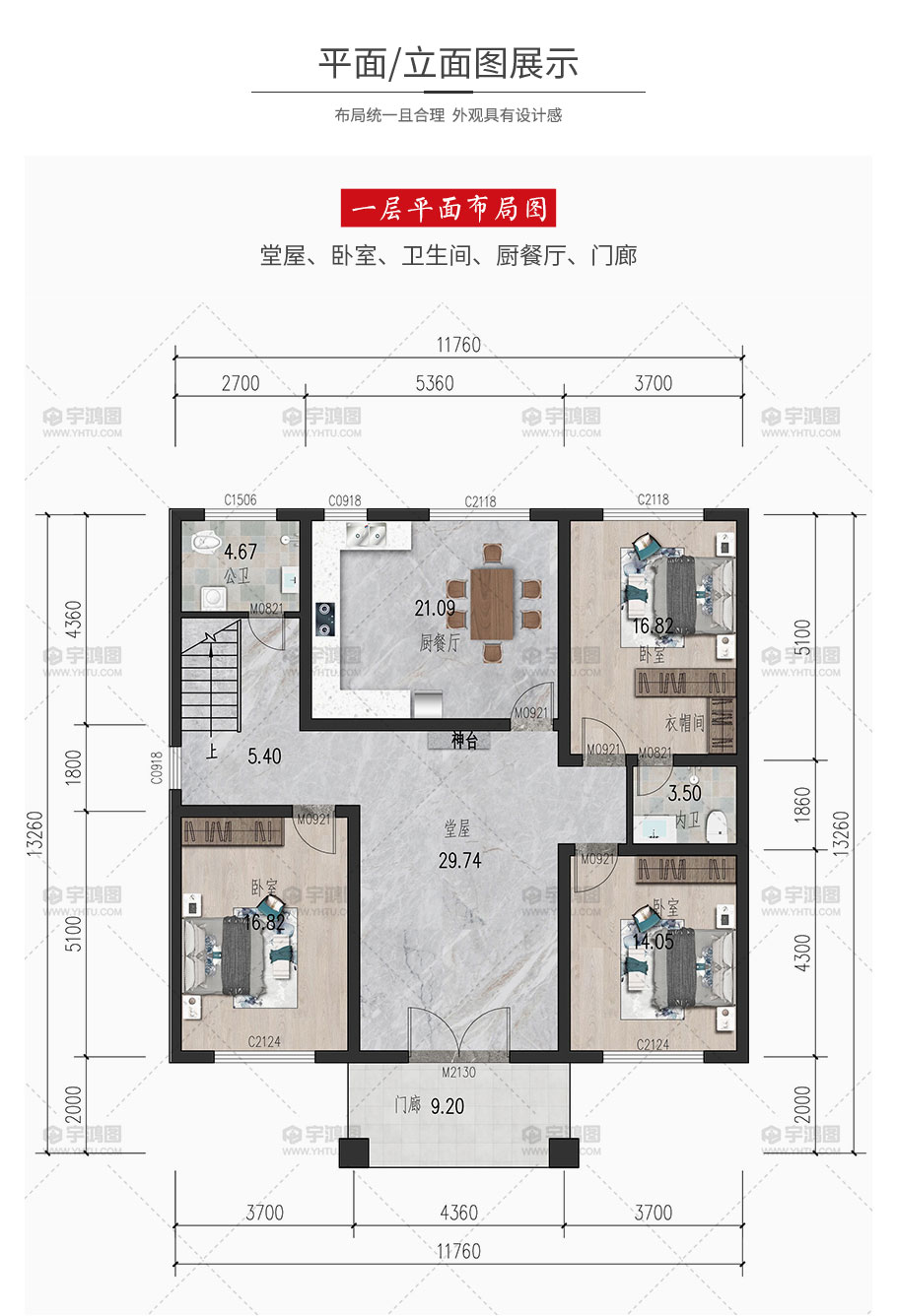 開間:11.7米 | 進(jìn)深:13.2米 | 占地面積:148平方米 | 建筑面積:286平方米 |