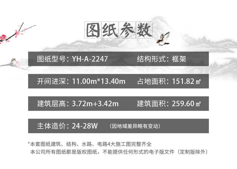 風格:新中式 | 層數:二層 | 結構形式:框架結構 | 圖紙編號:YH-A-2247 |