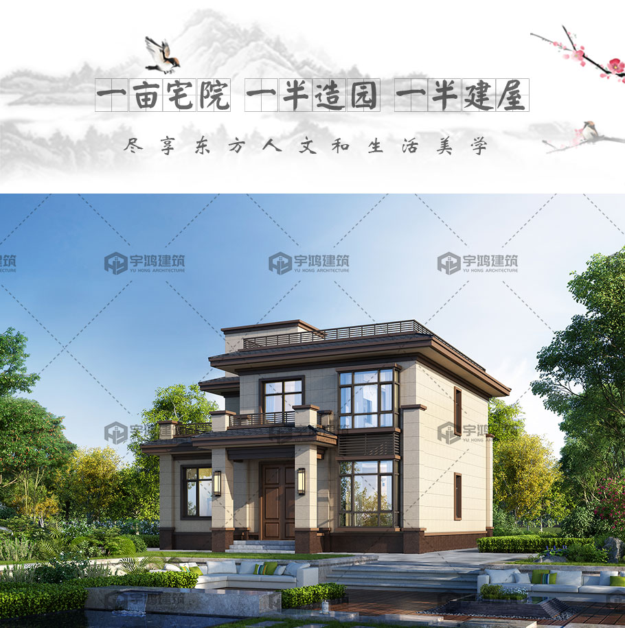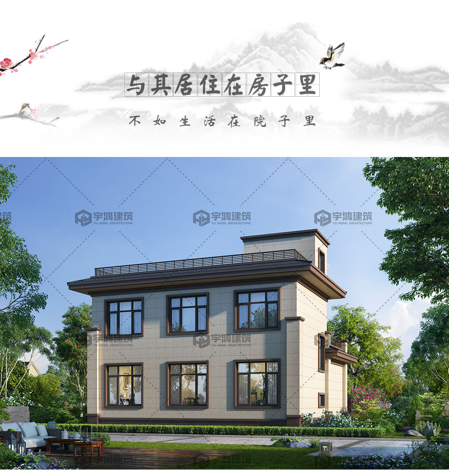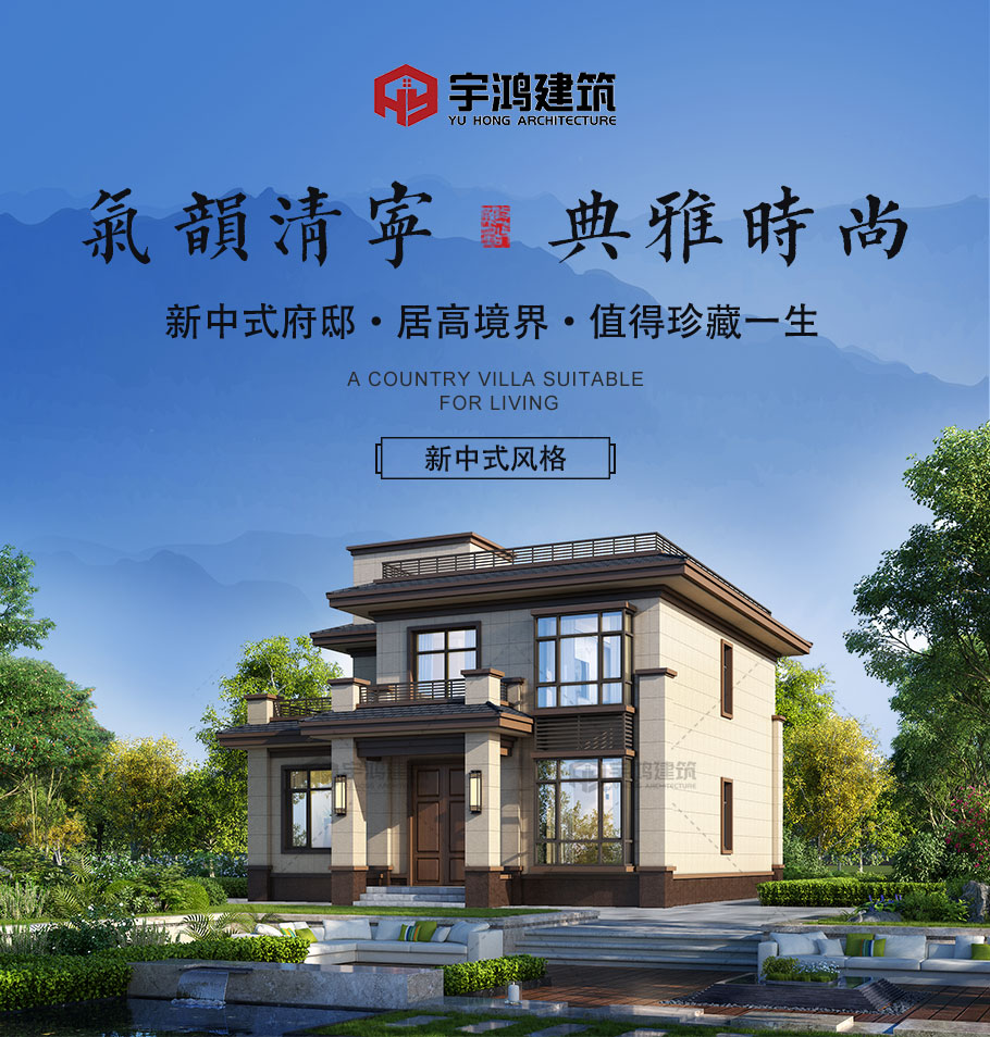 二層磚混結(jié)構(gòu)新中式別墅占地135平自建別墅