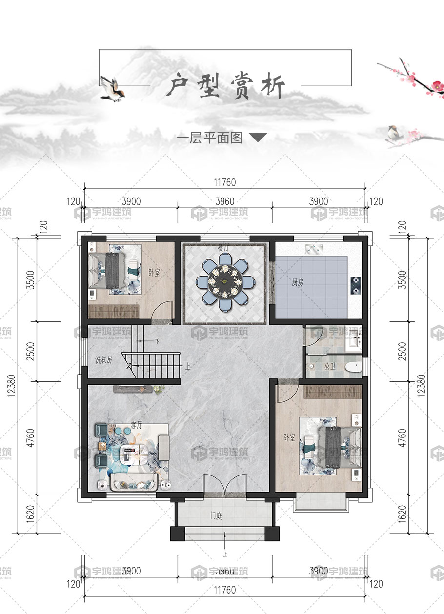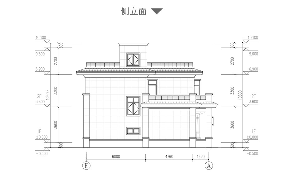成品圖紙>二層磚混結(jié)構(gòu)新中式別墅占地135平自建別墅