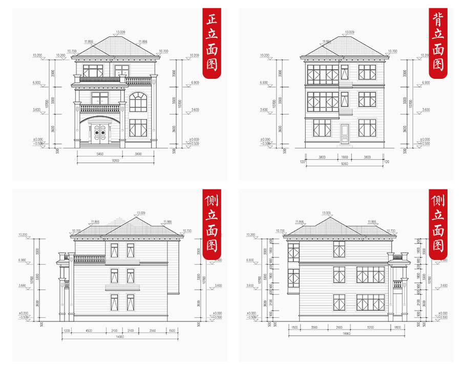 建筑平面圖:一層平面圖,二層平面圖,三層平面圖; 建筑立面圖:東立面圖,西立面圖,南立面圖,北立面圖,剖面圖; 大樣圖:樓梯詳圖,細部大樣,門窗大樣 |