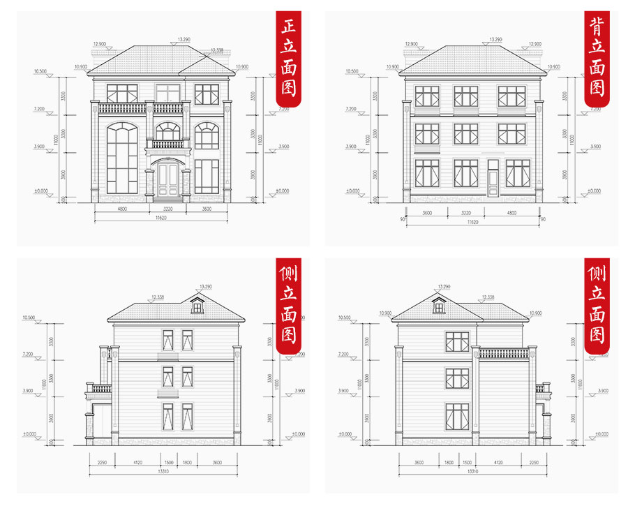 建筑圖: | 建筑平面圖:一層平面圖,二層平面圖,三層平面圖; 建筑立面圖:東立面圖,西立面圖,南立面圖,北立面圖,剖面圖; 大樣圖:樓梯詳圖,細部大樣,門窗大樣 |