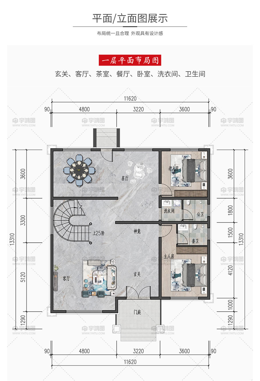 開間:11.6米 | 進深:13.3米 | 占地面積:141平方米 | 建筑面積:351平方米 |