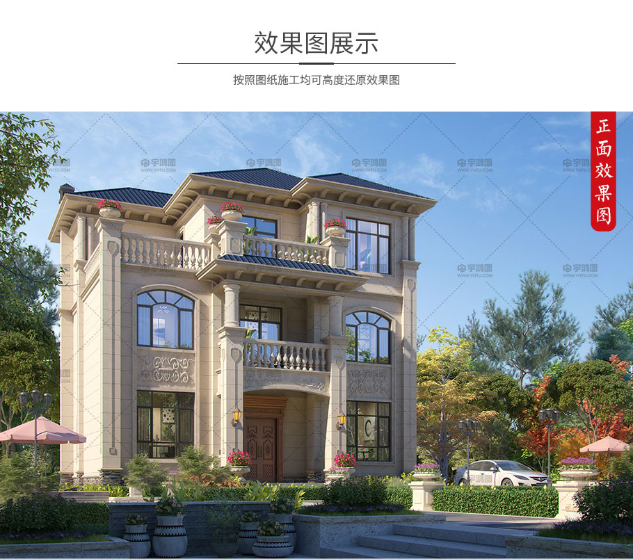三層歐式別墅磚混結(jié)構(gòu)占地122平建筑面積342平