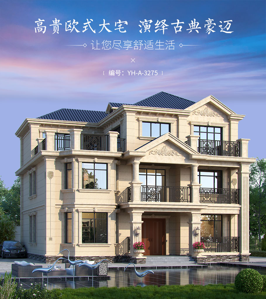 風格:歐式 | 層數:三層 | 結構形式:磚混結構 | 圖紙編號:YH-A-3275 |