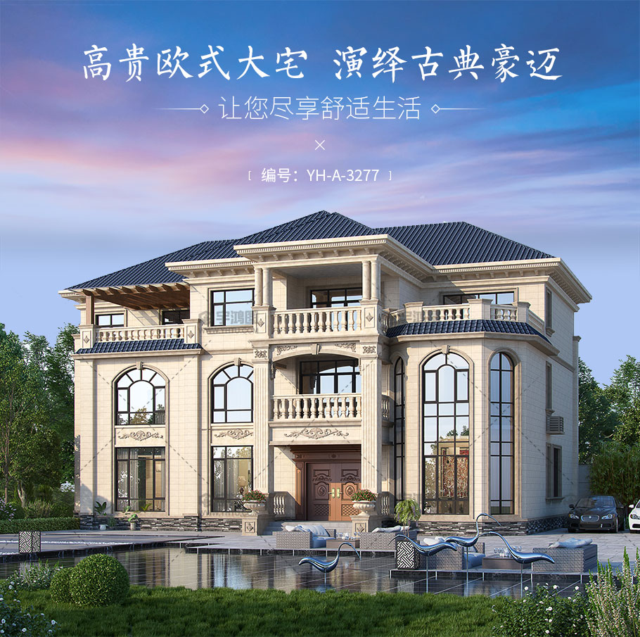 風格:歐式 | 層數:三層 | 結構形式:磚混結構 | 圖紙編號:YH-A-3277 |
