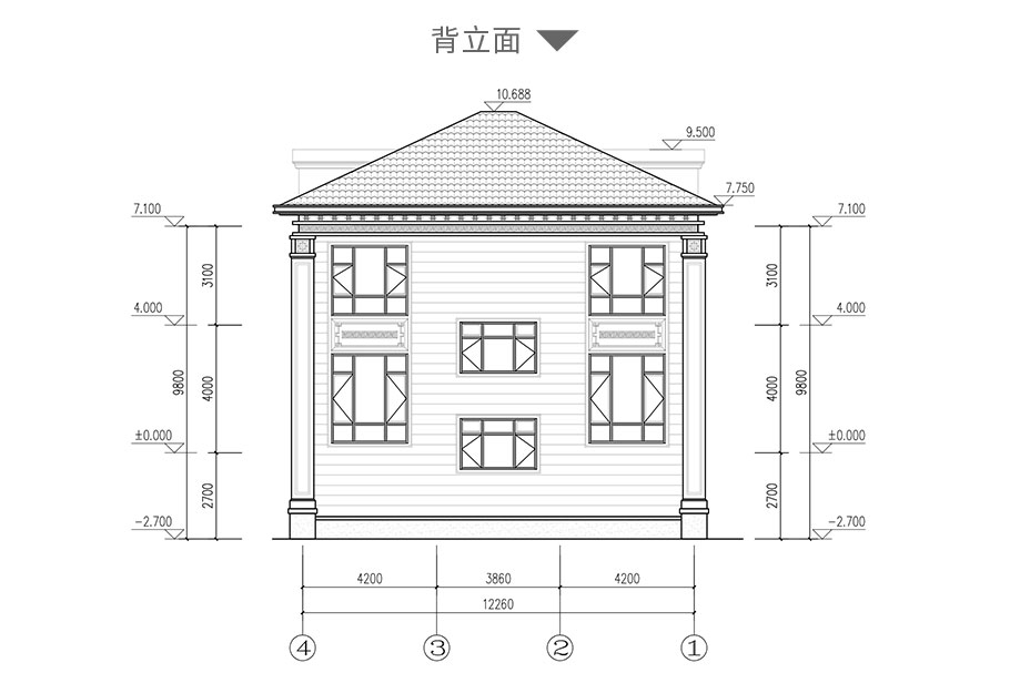 建筑圖: | 建筑平面圖:一層平面圖,二層平面圖; 建筑立面圖:東立面圖,西立面圖,南立面圖,北立面圖,剖面圖; 大樣圖:樓梯詳圖,細部大樣,門窗大樣 |