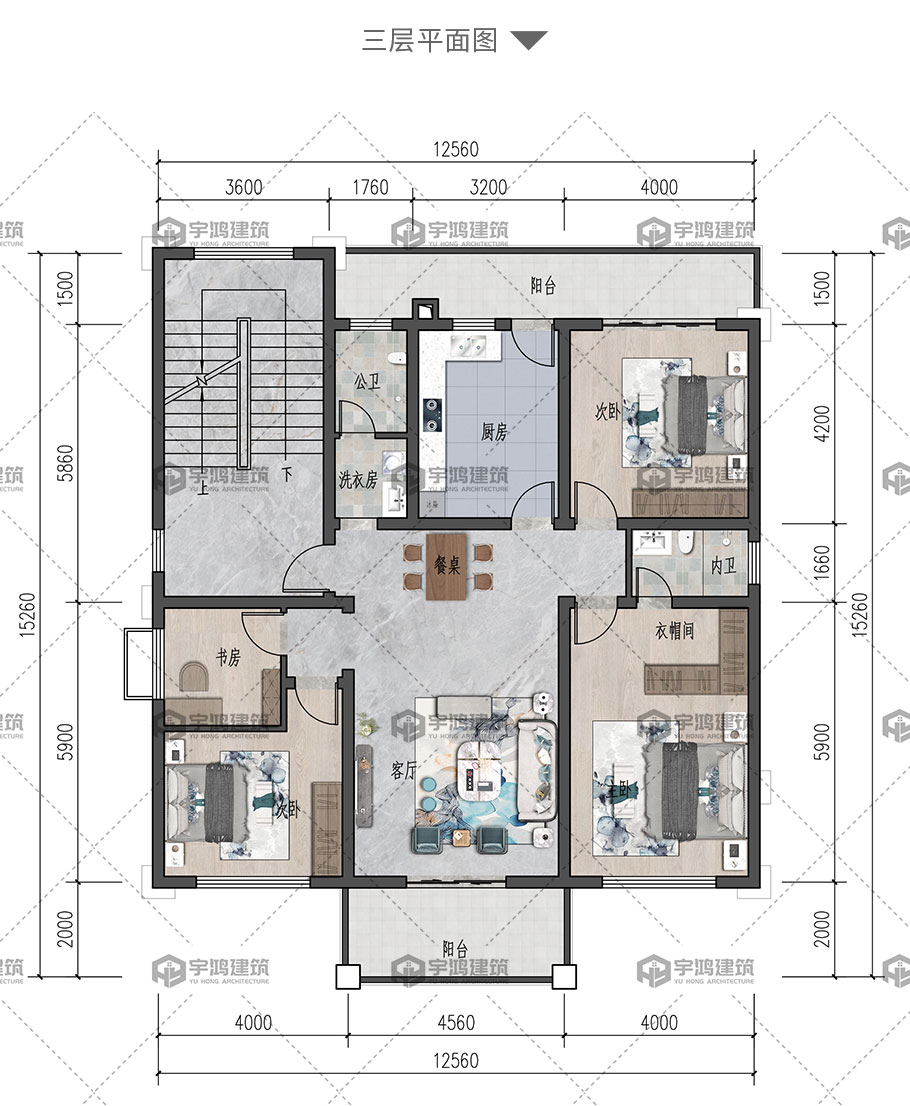 風格:新中式 | 層數:四層 | 結構形式:框架結構 | 圖紙編號:YH-A-4045 |