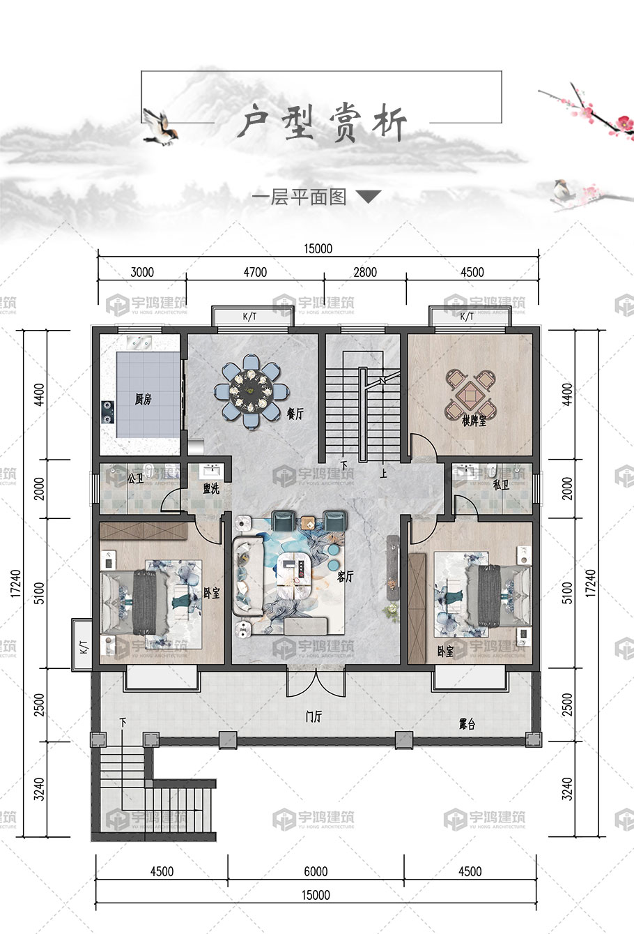 開間:15米 | 進深:17.2米 | 占地面積:185.5平方米 | 建筑面積:362.2平方米 |