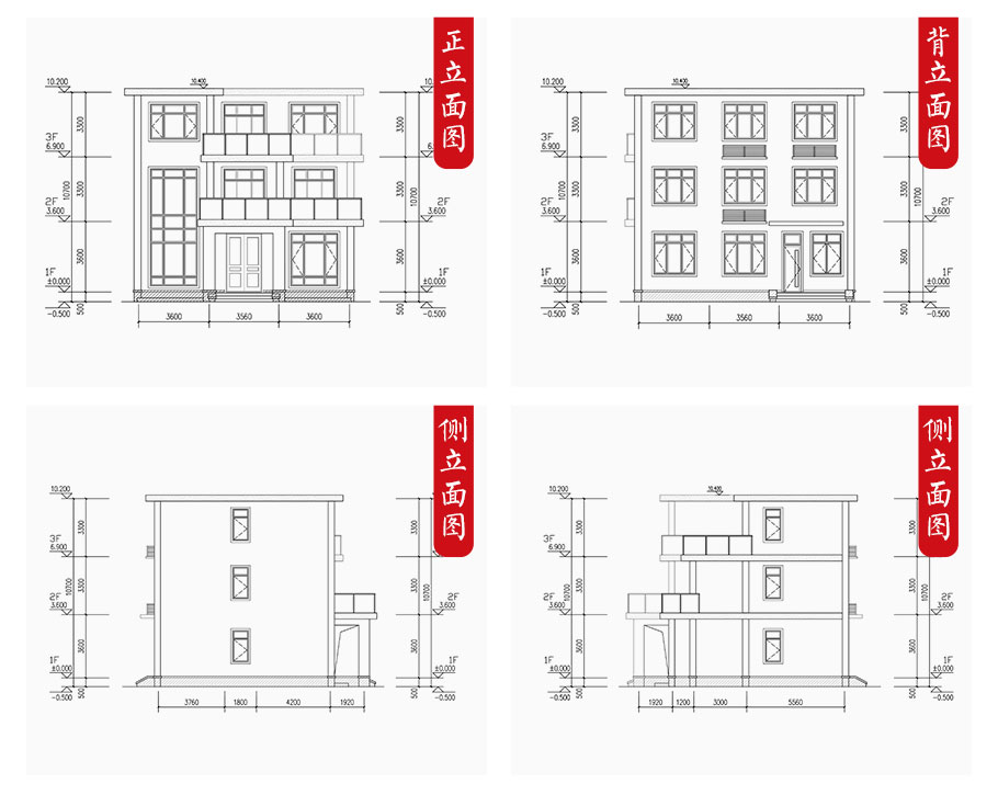 建筑平面圖:一層平面圖,二層平面圖,三層平面圖; 建筑立面圖:東立面圖,西立面圖,南立面圖,北立面圖,剖面圖; 大樣圖:樓梯詳圖,細部大樣,門窗大樣 |