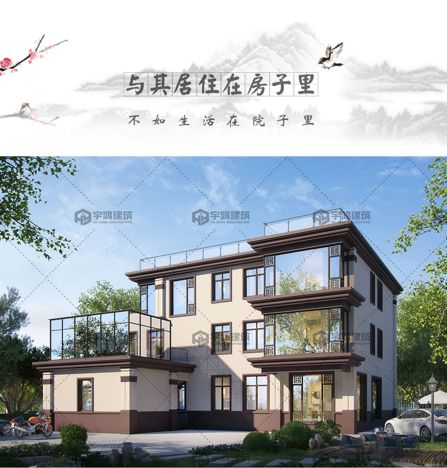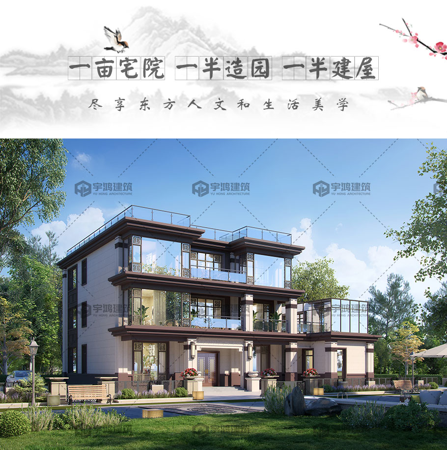 成品圖紙>新中式風(fēng)格三層別墅占地165平自建別墅設(shè)計圖