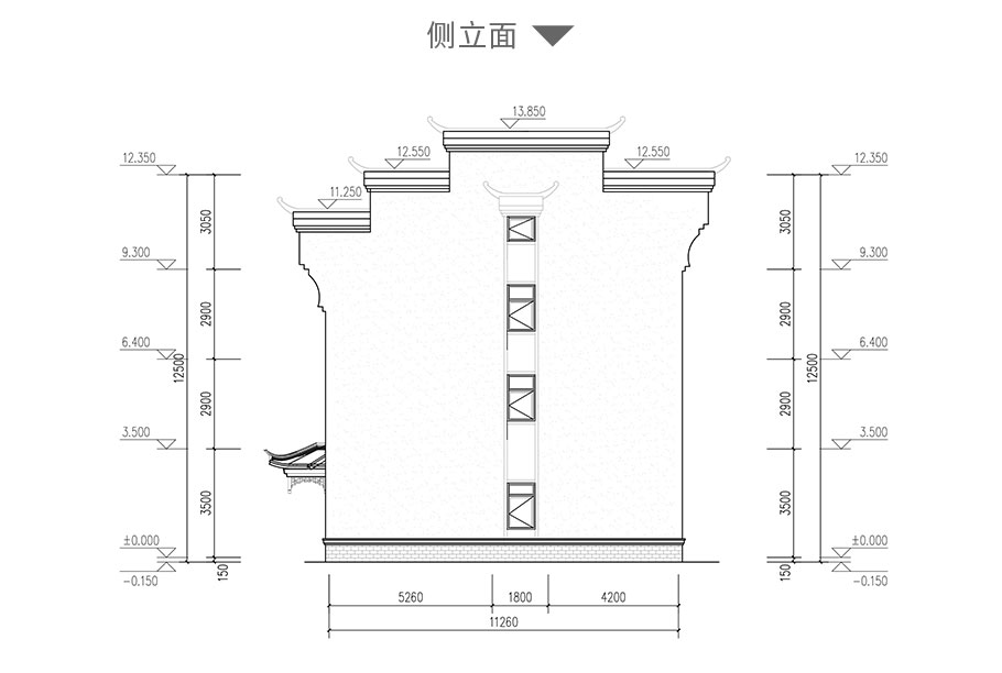 開(kāi)間:13.7米 | 進(jìn)深:11.2米 | 占地面積:161平方米 | 建筑面積:570平方米 |