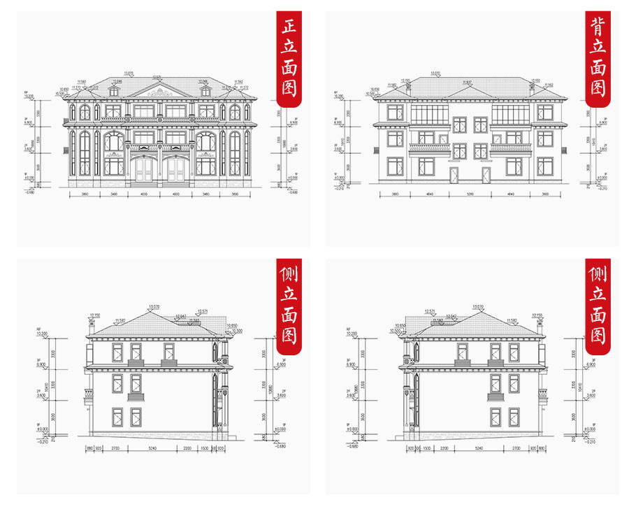 建筑平面圖:一層平面圖,二層平面圖,三層平面圖; 建筑立面圖:東立面圖,西立面圖,南立面圖,北立面圖,剖面圖; 大樣圖:樓梯詳圖,細部大樣,門窗大樣 |