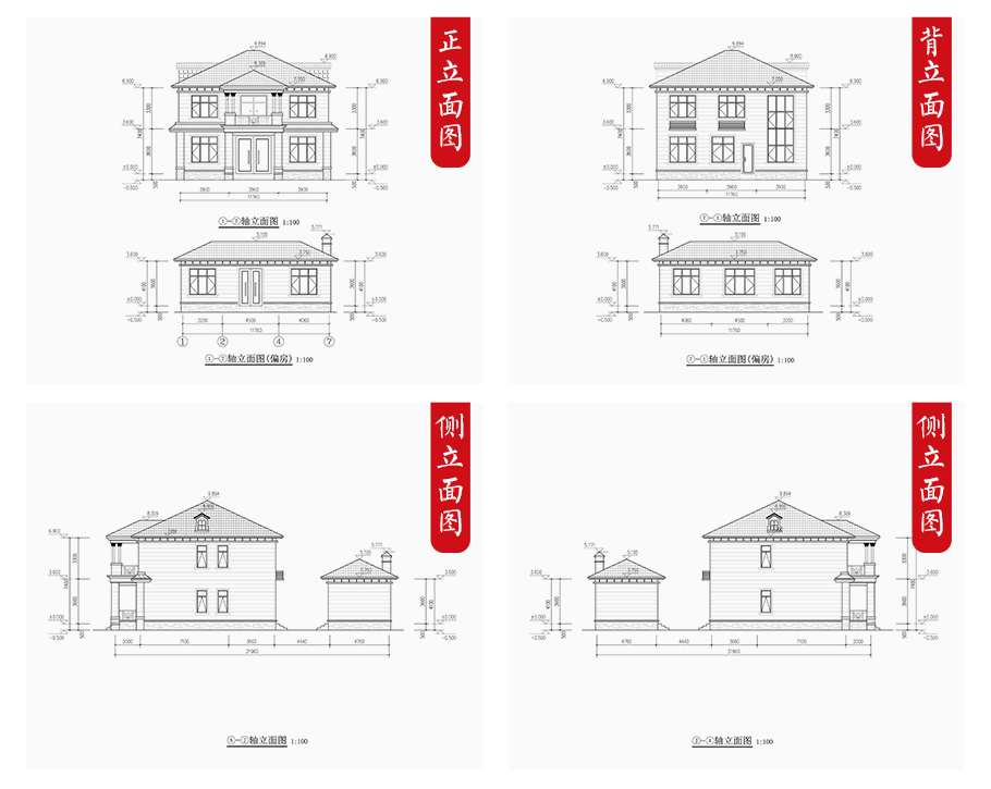 建筑圖: | 建筑平面圖:一層平面圖,二層平面圖; 建筑立面圖:東立面圖,西立面圖,南立面圖,北立面圖,剖面圖; 大樣圖:樓梯詳圖,細(xì)部大樣,門窗大樣 |