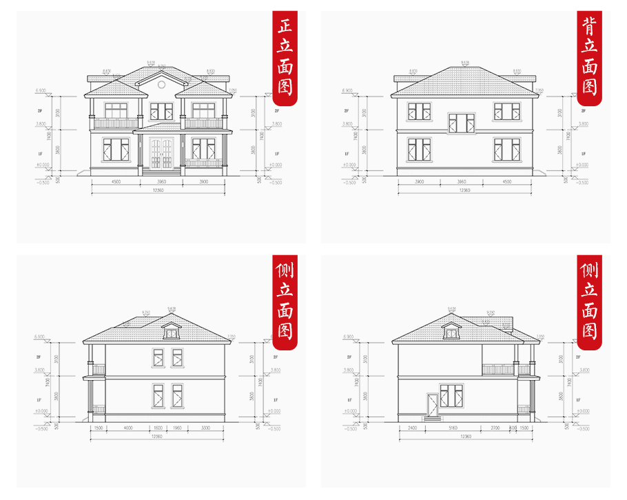 建筑平面圖:一層平面圖,二層平面圖; 建筑立面圖:東立面圖,西立面圖,南立面圖,北立面圖,剖面圖; 大樣圖:樓梯詳圖,細(xì)部大樣,門窗大樣 |