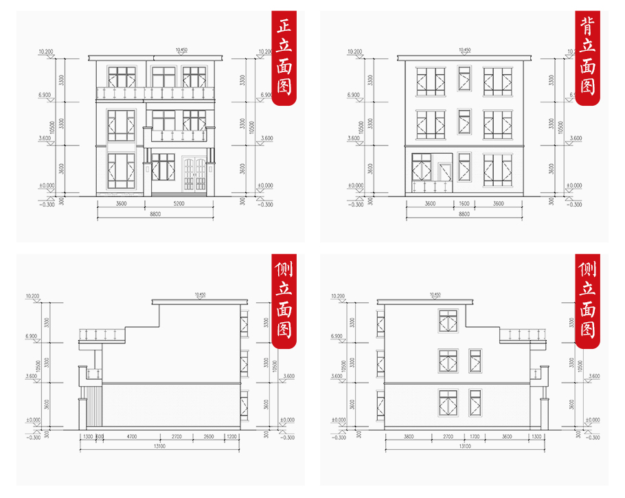 開(kāi)間:8.8米 | 進(jìn)深:13.1米 | 占地面積:107.4平方米 | 建筑面積:275.4平方米 |