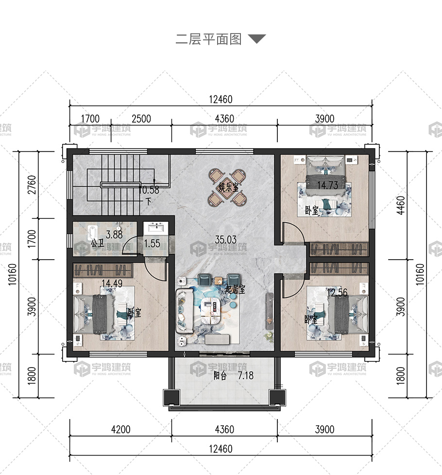 開間:12.4米 | 進深:10.16米 | 占地面積:117.8平方米 | 建筑面積:226.1平方米 |