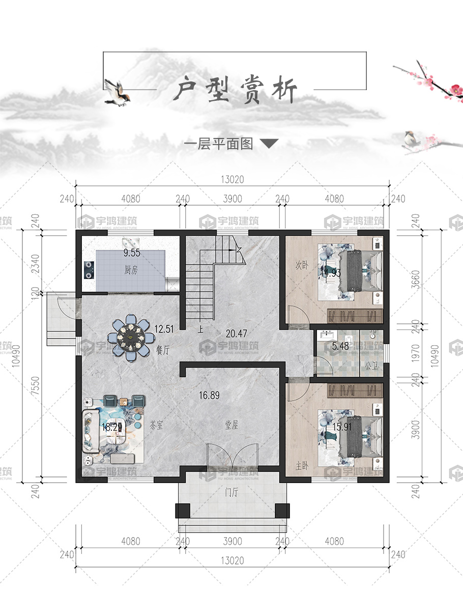 開間:13米 | 進深:10.5米 | 占地面積:143.5平方米 | 建筑面積:235平方米 |