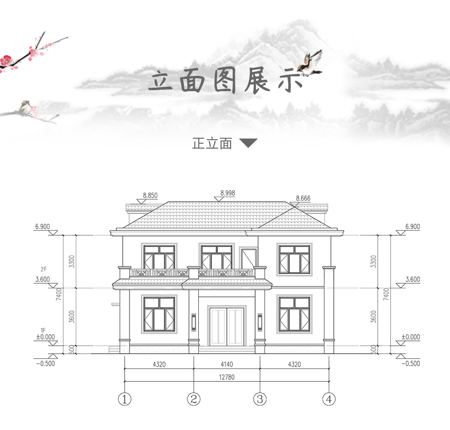 風格:新中式 | 層數:二層 | 結構形式:磚混結構 | 圖紙編號:YH-2-6187 |