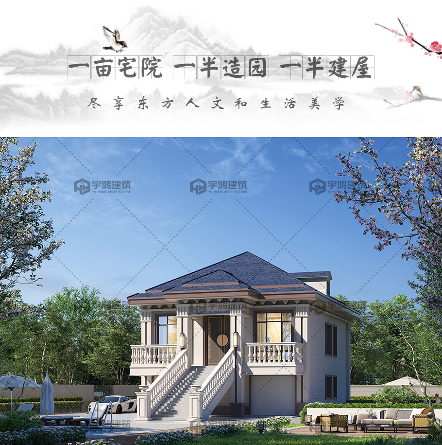 造價不貴兩層新中式別墅占地144平自建別墅圖紙
