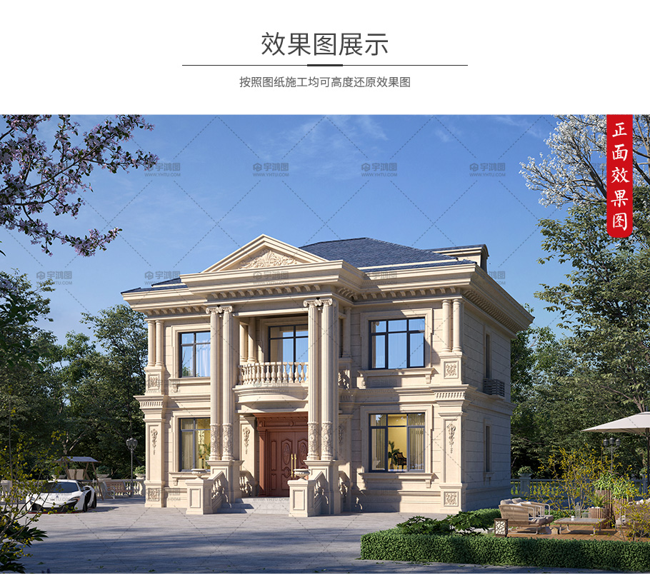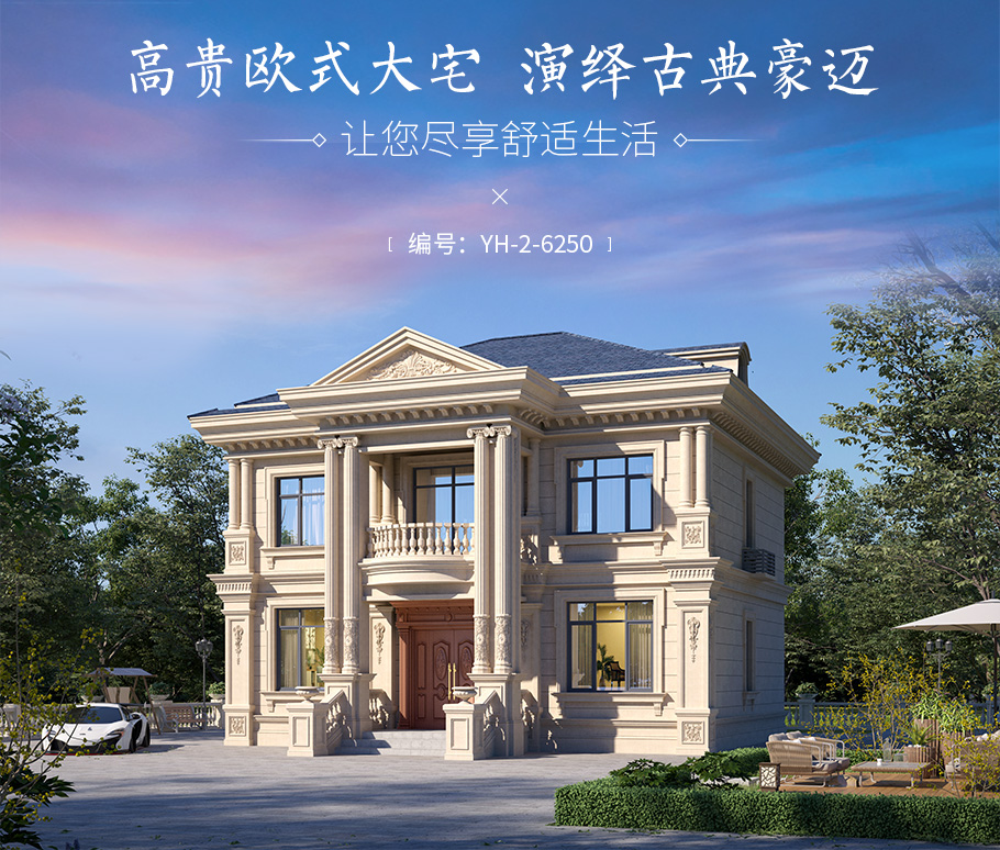 風格:歐式 | 層數:二層 | 結構形式:框架結構 | 圖紙編號:YH-2-6250 |