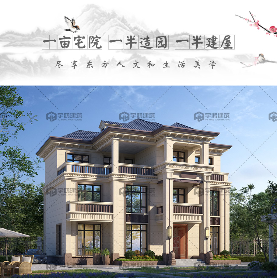 三層新中式框架別墅占地160平自建別墅設(shè)計(jì)圖
