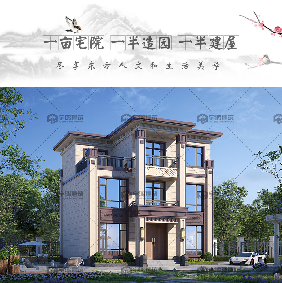新中式三層磚混別墅占地115平自建別墅圖紙