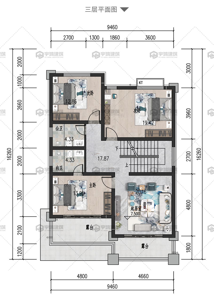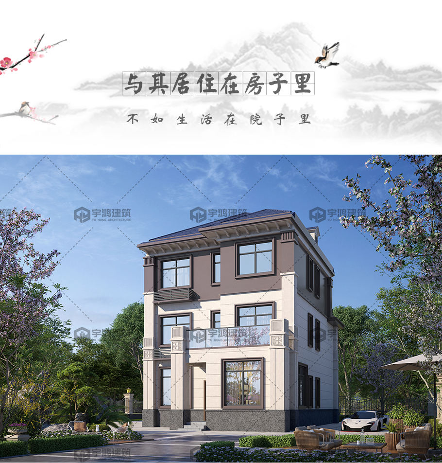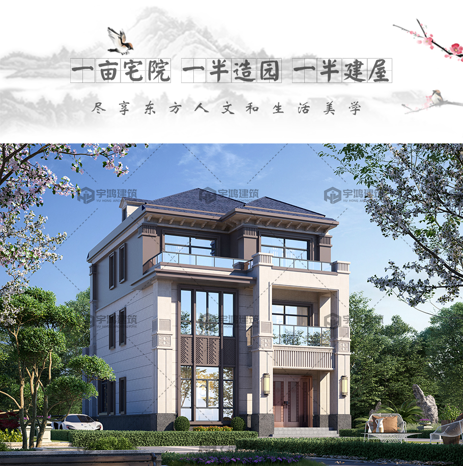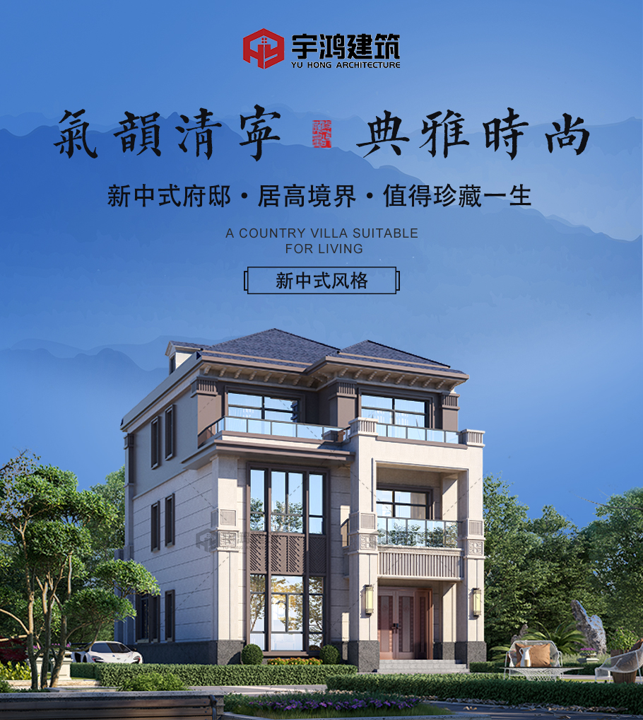 占地138平三層新中式別墅磚混結構自建別墅圖紙