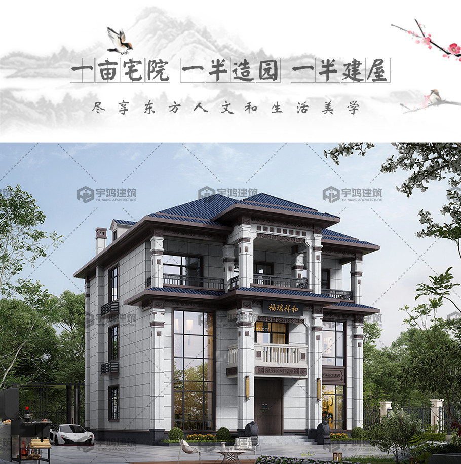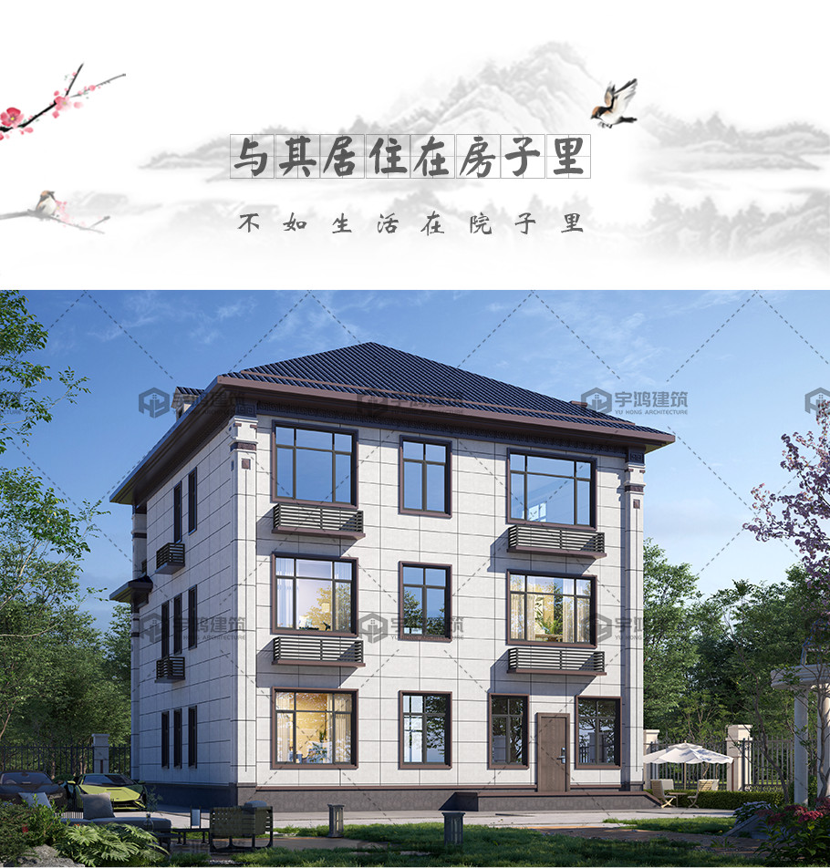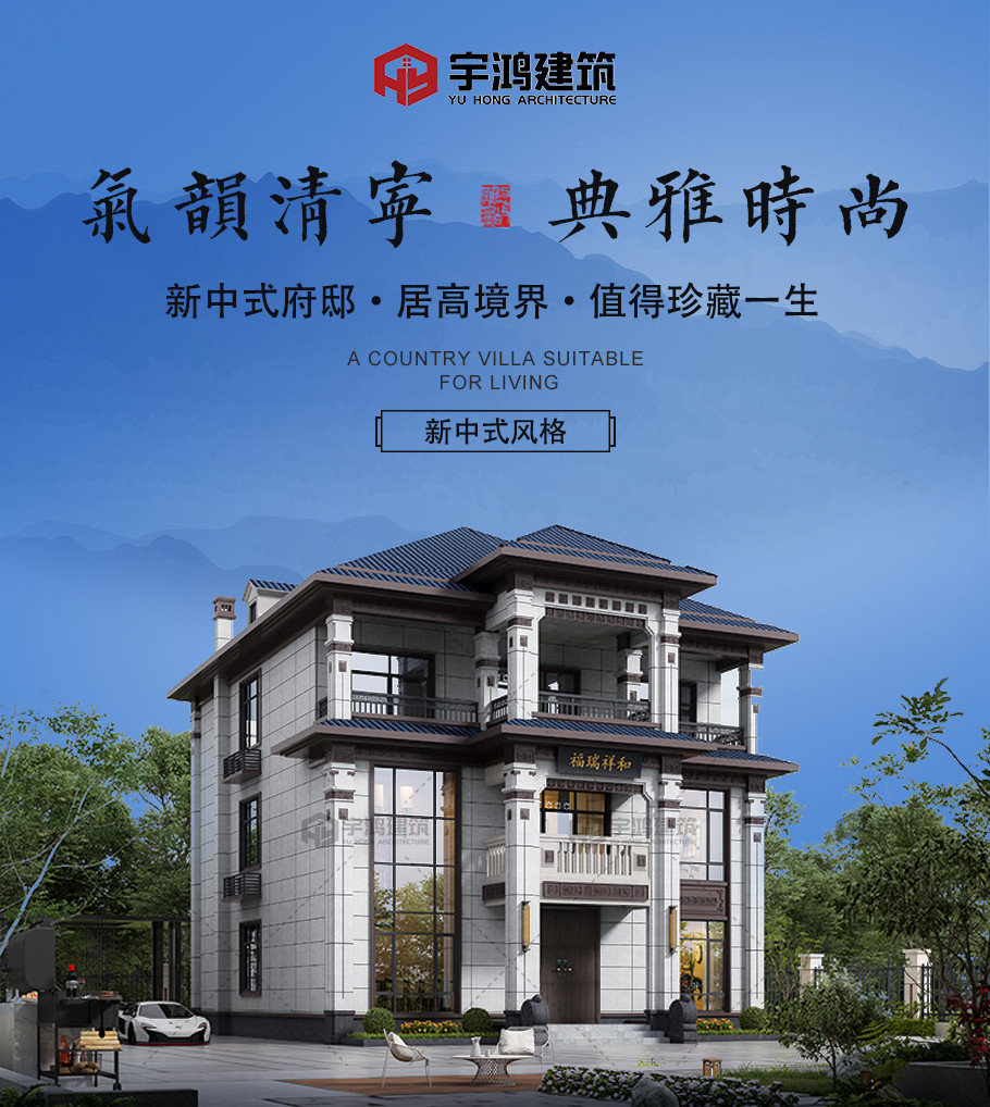 高端大氣三層新中式別墅占地196平自建別墅圖紙