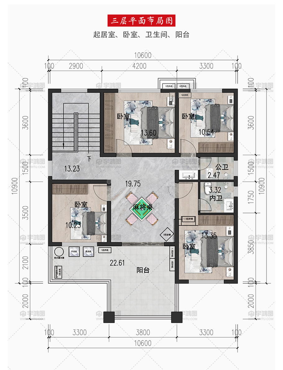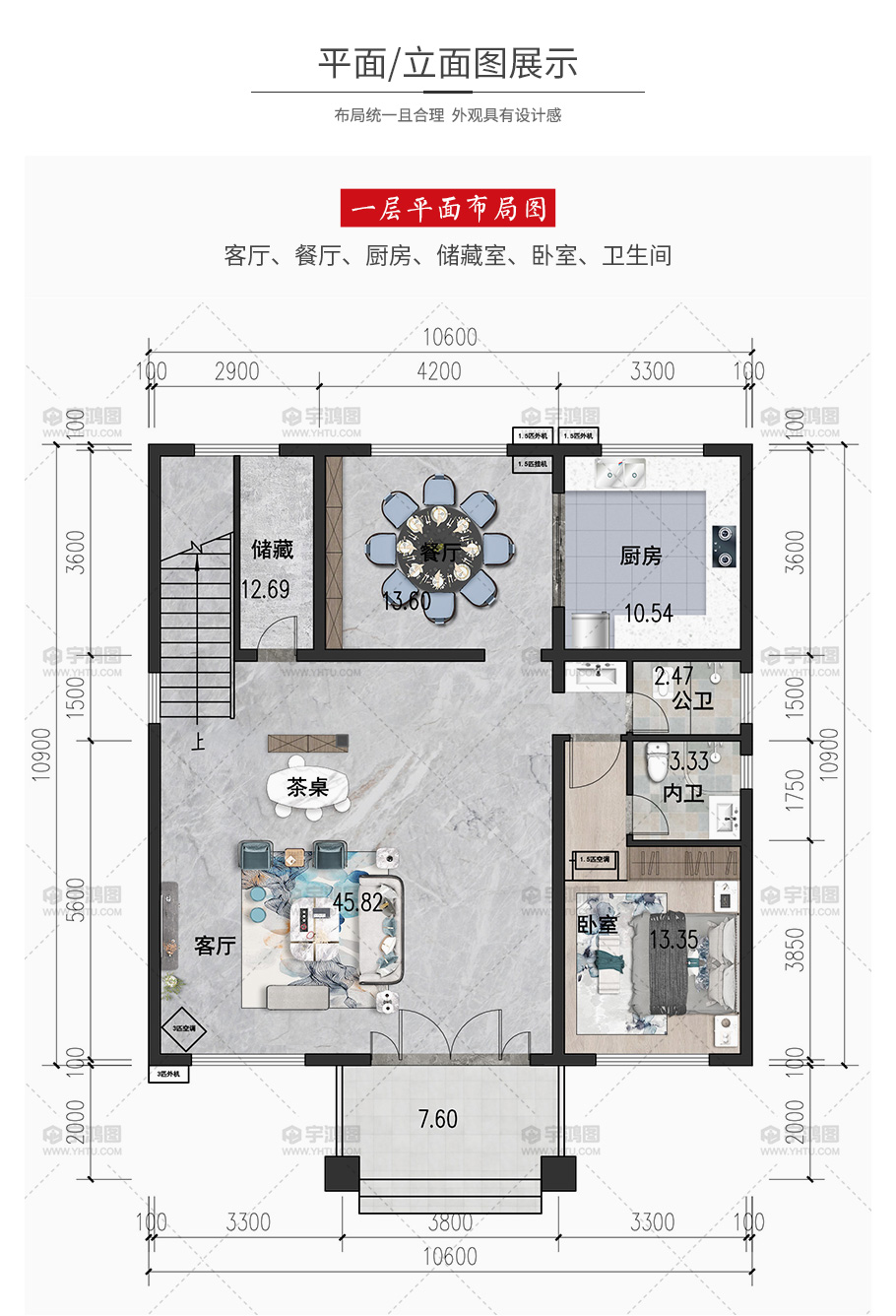 開間:10.6米 | 進(jìn)深:10.9米 | 占地面積:123.54平方米 | 建筑面積:334.42平方米 |