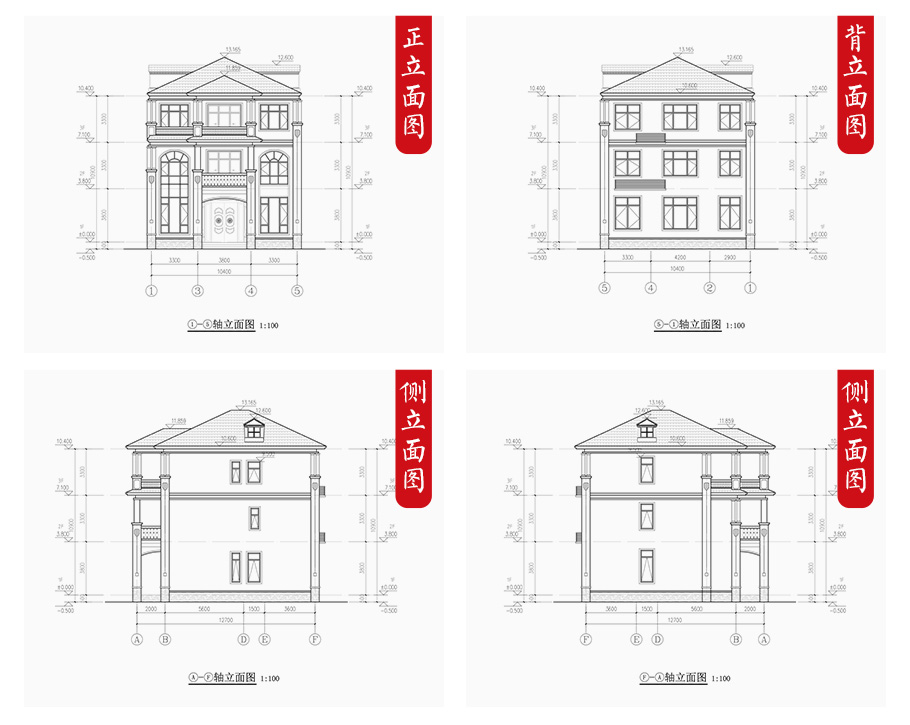 建筑圖: | 建筑平面圖:一層平面圖,二層平面圖,三層平面圖; 建筑立面圖:東立面圖,西立面圖,南立面圖,北立面圖,剖面圖; 大樣圖:樓梯詳圖,細(xì)部大樣,門窗大樣 |