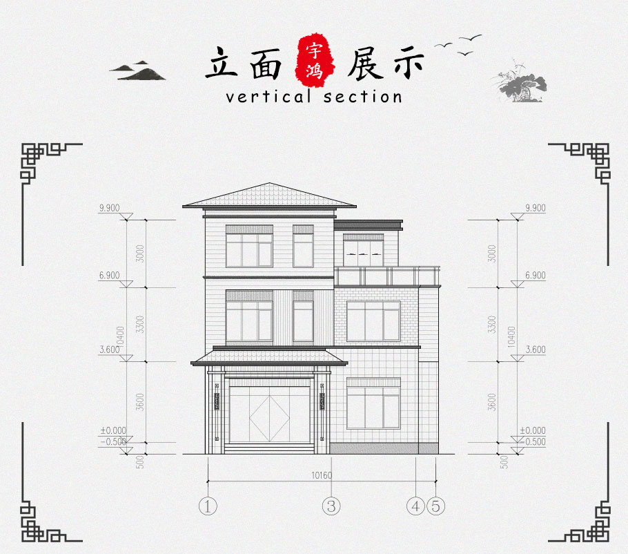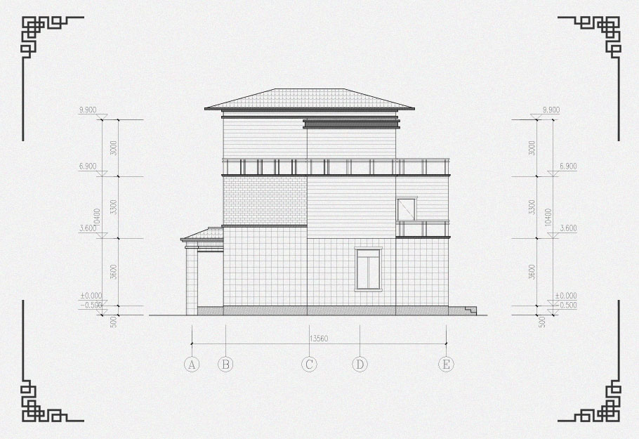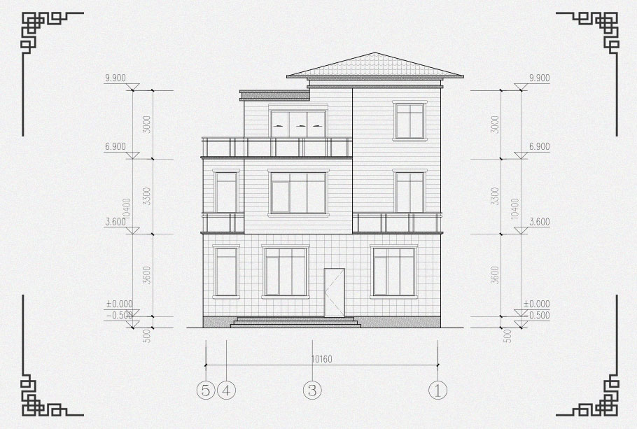 建筑立面圖:東立面圖,西立面圖,南立面圖,北立面圖,剖面圖;