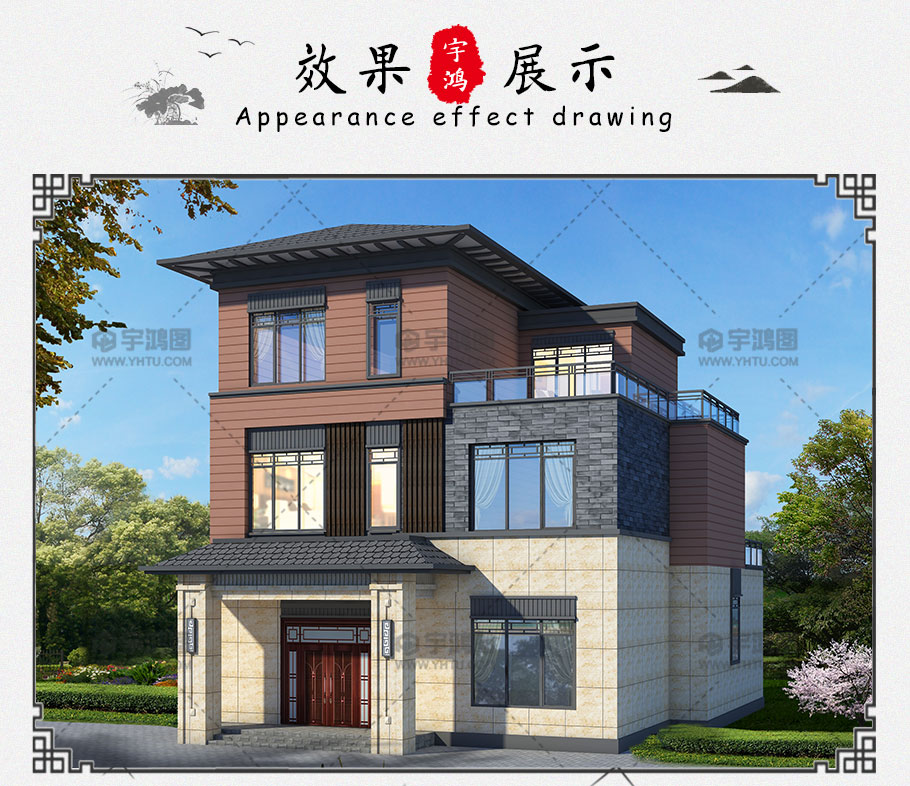 本戶型為121平大方好看中式三層農村別墅款式圖紙,在農村25萬就能建造出豪華大氣、戶型實用的別墅。本方案一二層都有大客廳,所有臥室帶衣帽間,帶多個露臺。外觀高低錯落有致,建筑色彩鮮艷豐富,富有層次感的坡屋頂,它象征著富足美好的鄉村田園生活。