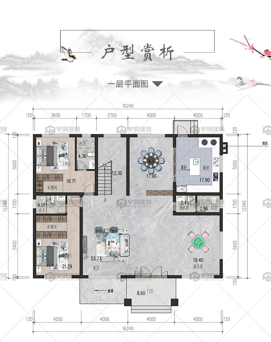 開間:16.2米 | 進深:12.3米 | 占地面積:201.6平方米 | 建筑面積:359平方米 |