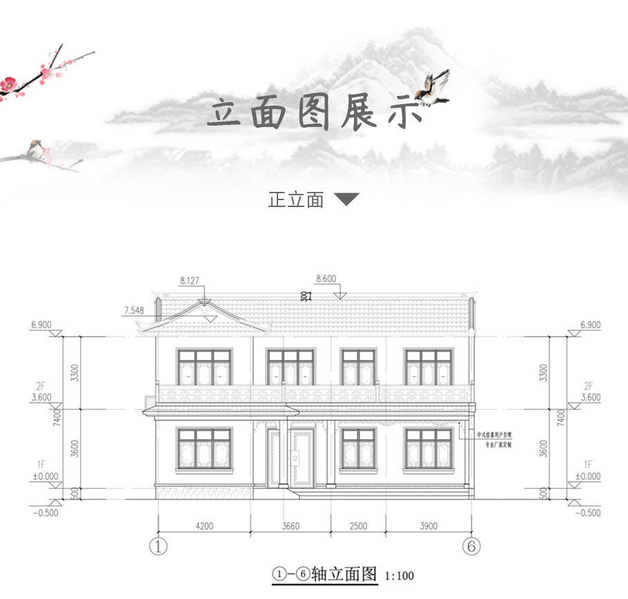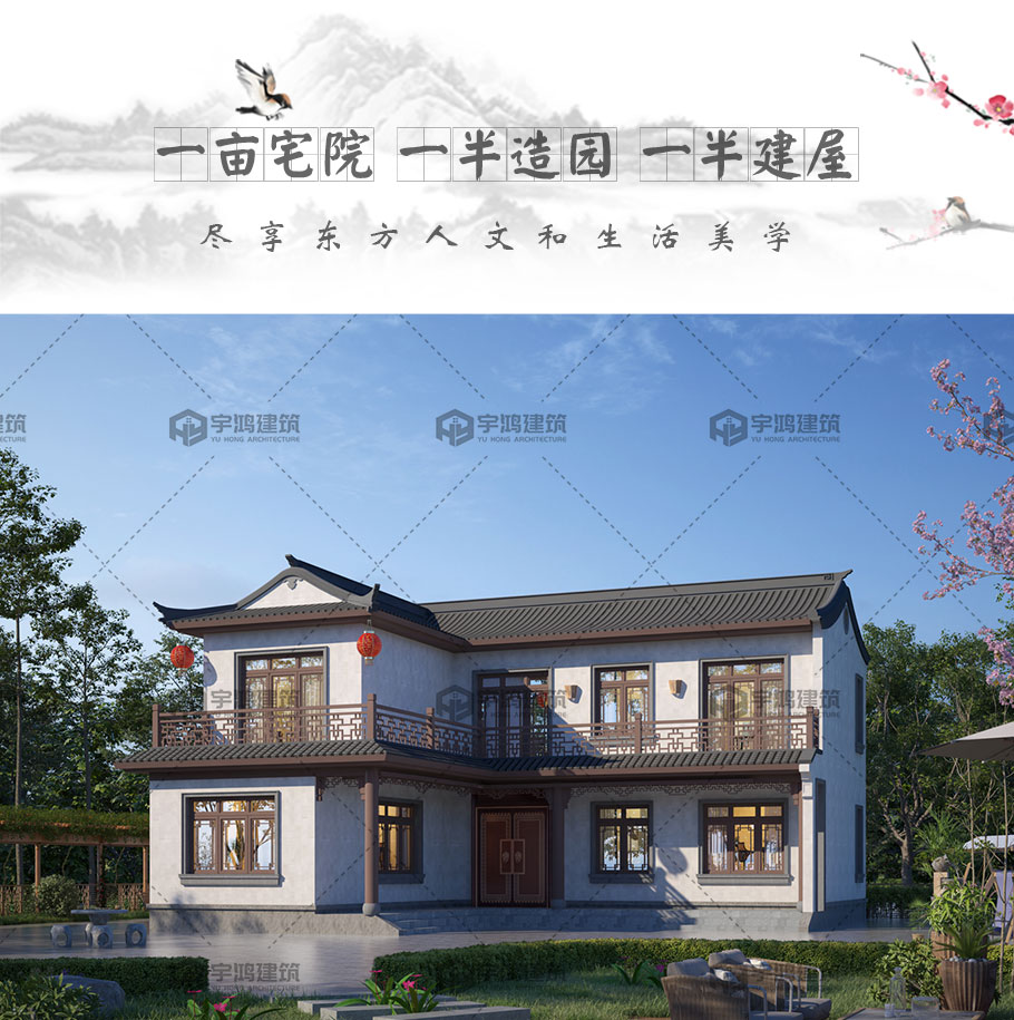 風格:中式 | 層數:二層 | 結構形式:框架結構 | 圖紙編號:YH-2-6525 |