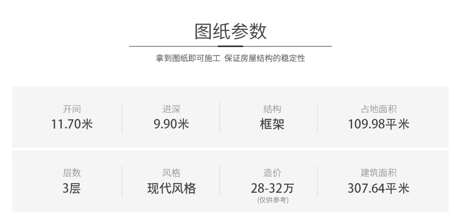 三層現(xiàn)代風(fēng)格別墅占地110平框架結(jié)構(gòu)設(shè)計(jì)圖