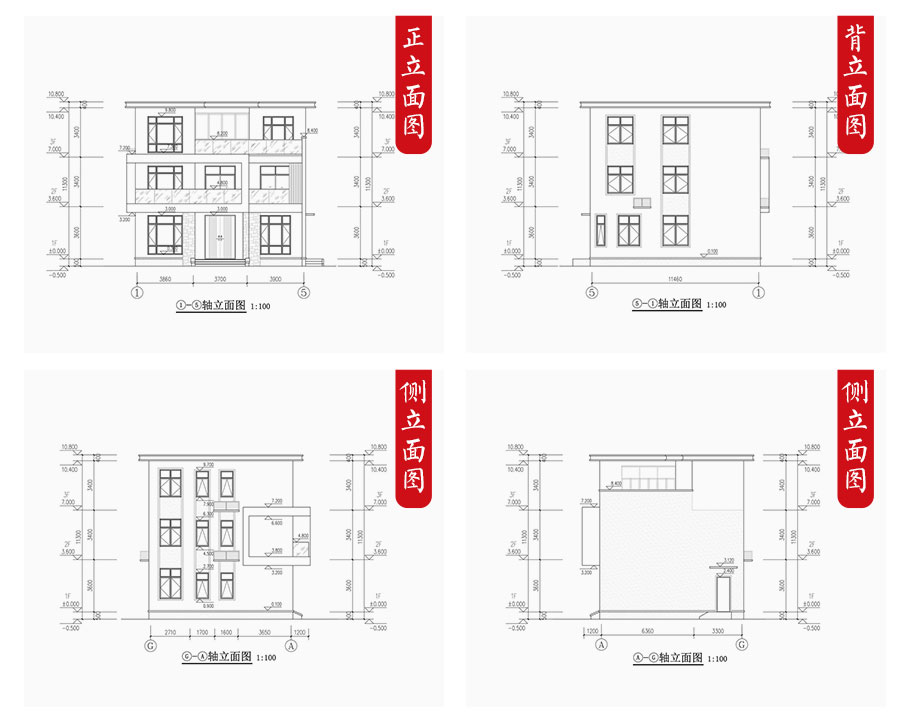 建筑平面圖:一層平面圖,二層平面圖,三層平面圖; 建筑立面圖:東立面圖,西立面圖,南立面圖,北立面圖,剖面圖; 大樣圖:樓梯詳圖,細(xì)部大樣,門窗大樣 |