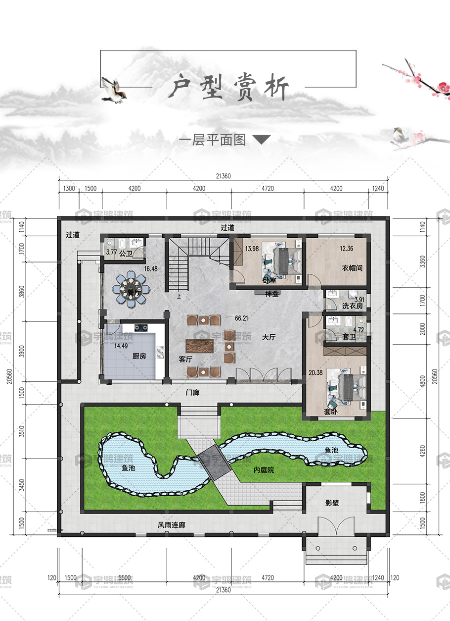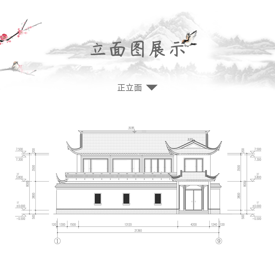 風格:中式 | 層數:二層 | 結構形式:框架結構 | 圖紙編號:YH-2-2706 |