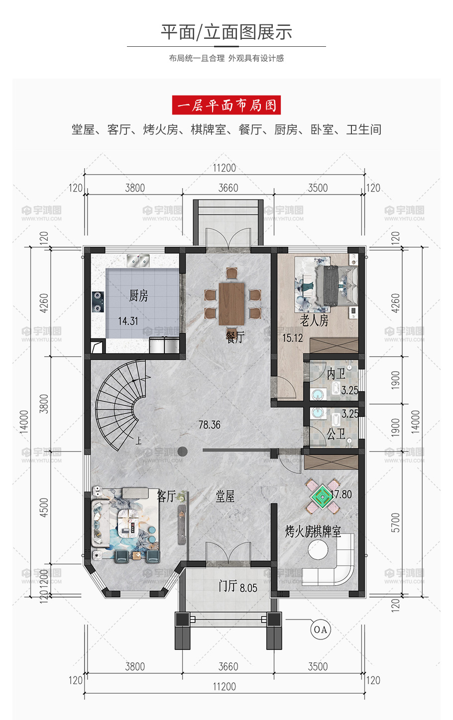開間:11.2米 | 進深:14米 | 占地面積:158.46平方米 | 建筑面積:284.23平方米 |