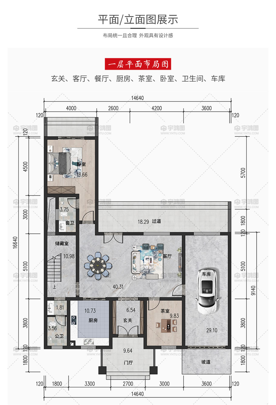 開間:14.64米 | 進(jìn)深:16.64米 | 占地面積:165.6平方米 | 建筑面積:356平方米 |