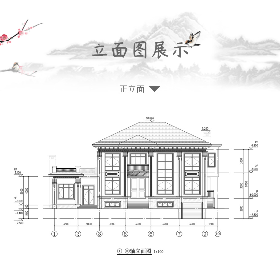 建筑圖: | 建筑平面圖:一層平面圖,二層平面圖; 建筑立面圖:東立面圖,西立面圖,南立面圖,北立面圖,剖面圖; 大樣圖:樓梯詳圖,細部大樣,門窗大樣 |