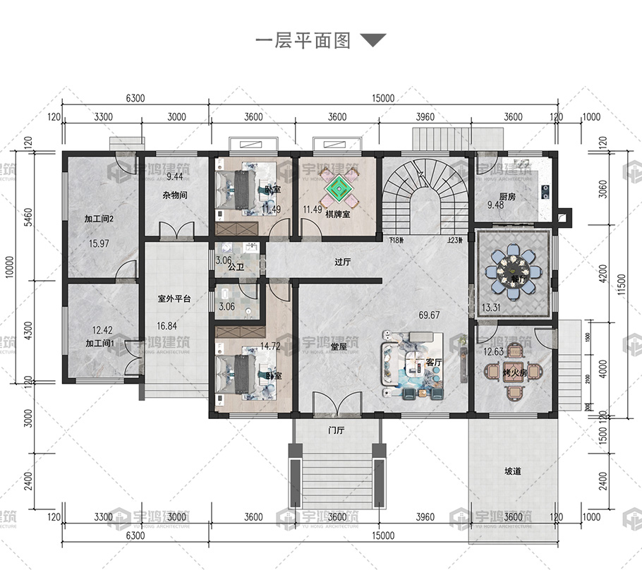 開間:21.3米 | 進深:11.5米 | 占地面積:241.4平方米 | 建筑面積:551.6平方米 |