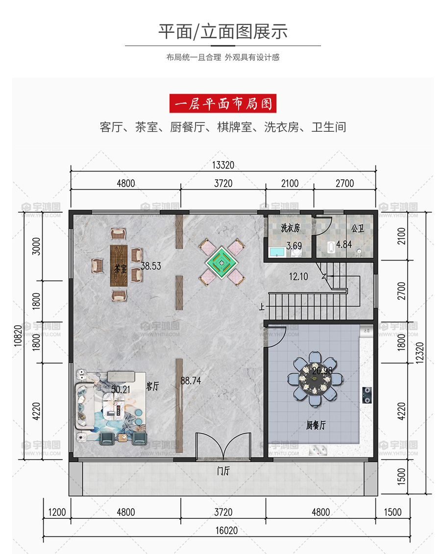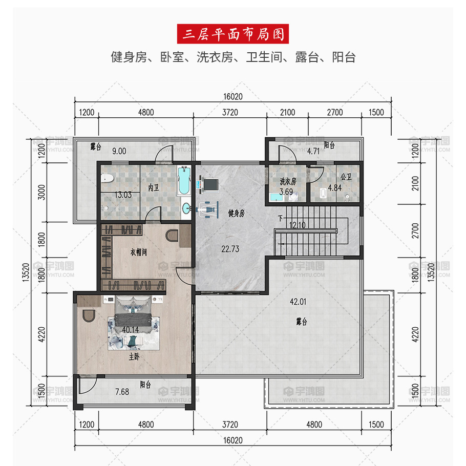 開間:16.02米 進深:12.32米 占地面積:148.5平方米 建筑面積:435.5平方米