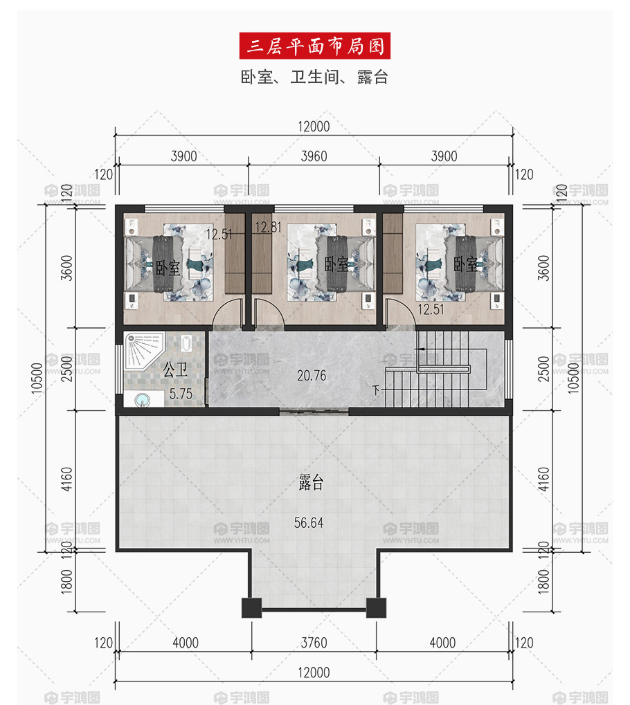樓層給排水平面圖:一層給排水平面圖,二層給排水平面圖,三層給排水平面圖; 屋頂給排水平面圖; 衛生間排水系統圖 |