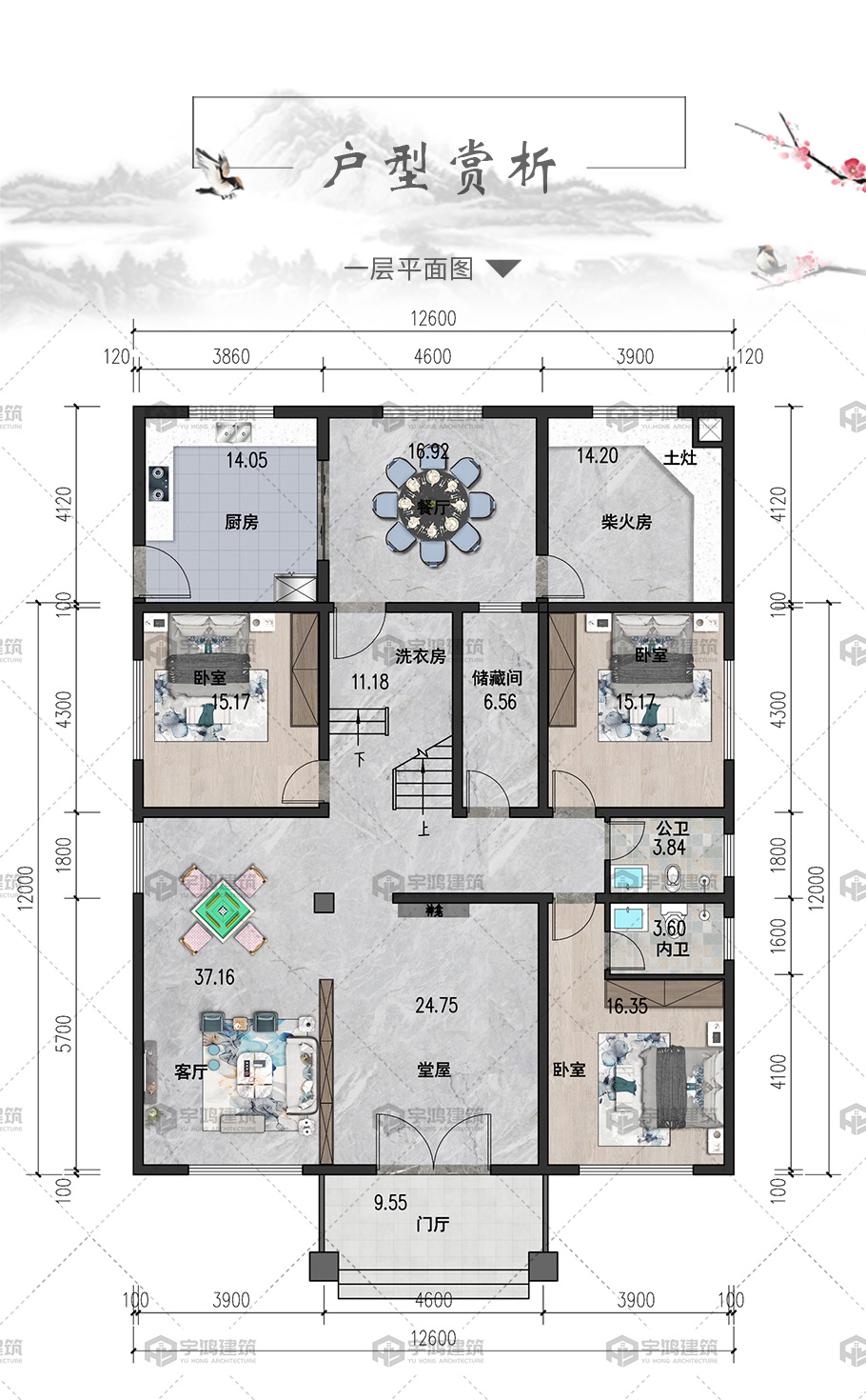 成品圖紙>兩層框架結(jié)構(gòu)新中式別墅占地212平設(shè)計(jì)圖紙