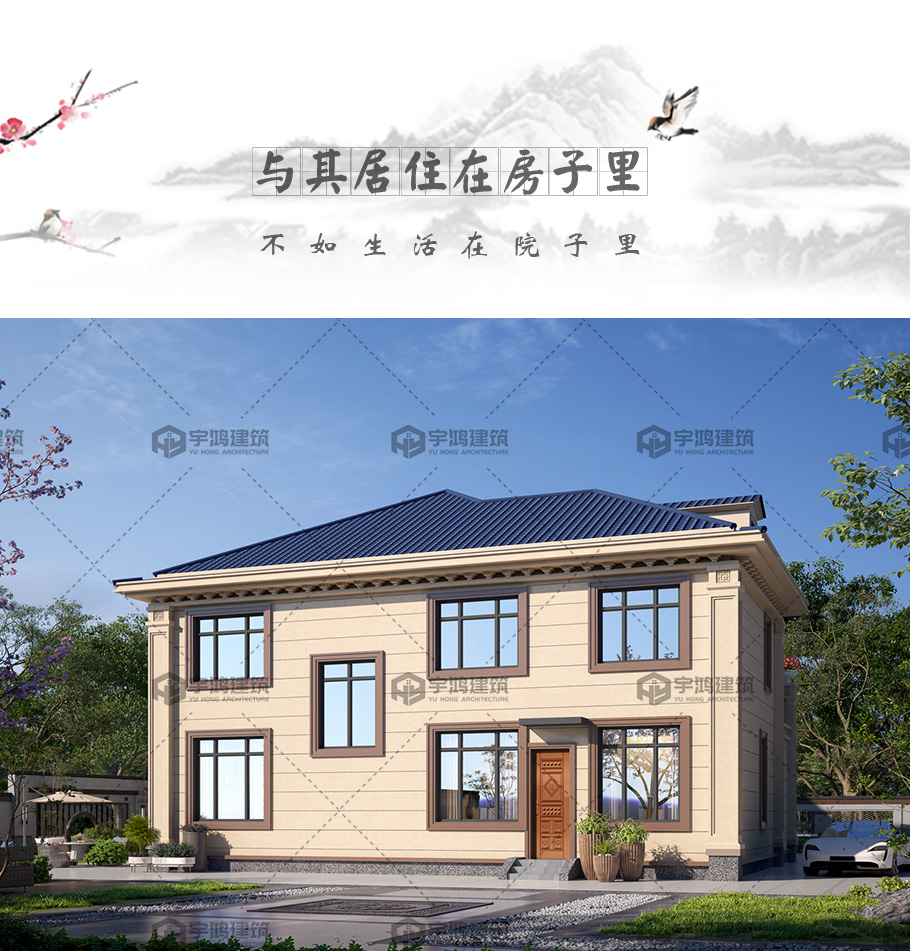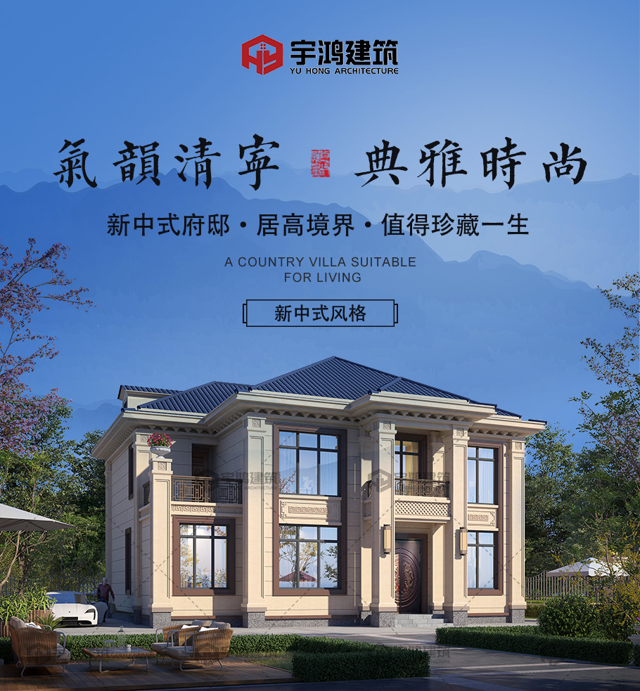 二層新中式磚混結(jié)構(gòu)別墅占地168平自建別墅